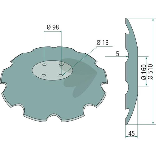 Tallrik Tandad Köckerling 4 fästhål 510x5mm