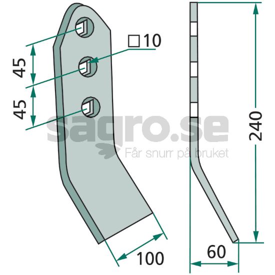 LagerstatusArtikelnummer18010.1045-2TillverkareEgenskaperTjocklek (mm): 8, Arbetsbredd (mm): 100, Mått (mm): Bredd = 100, Monteringsanvisning: Skruvar och muttrar får inte dras åt med tryckluftsverktyg, eftersom slitdelen kan skadas.Slitvinkel välvd passande Horsch, Väderstad med flera.