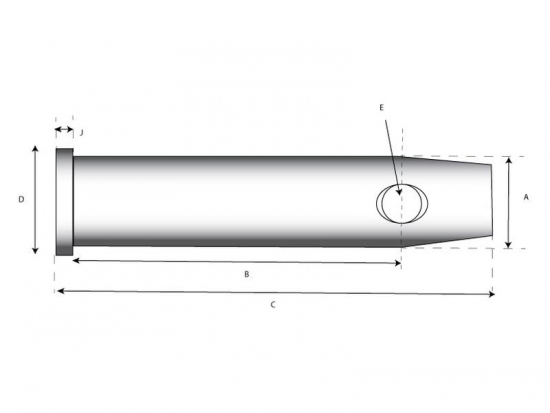 - (A) Sprint Ø:32 mm (1-1/4'') (B) Arbetslängd:141 mm (5-9/16'') (C) Total längd:165 mm (6-1/2'') (E) Hål Ø:12 mm (1/2'')